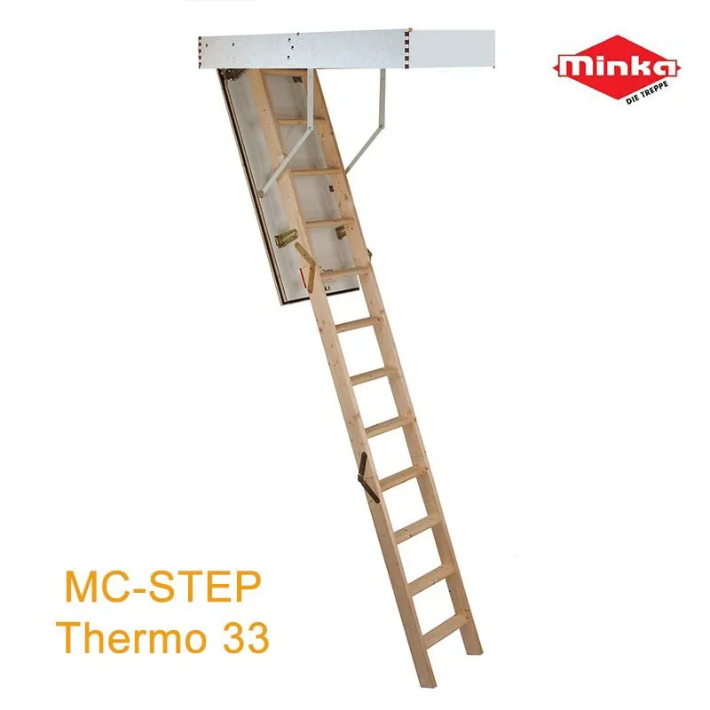 Лестница складная трехсекционная. Рабочая поверхность полностью выполнена из металла и покрашена порошковой краской. Термоизоляционная крышка типа "сэндвич", толщиной 47 мм, утеплена пенопластом, облицована с двух сторон ДCП белого цвета.