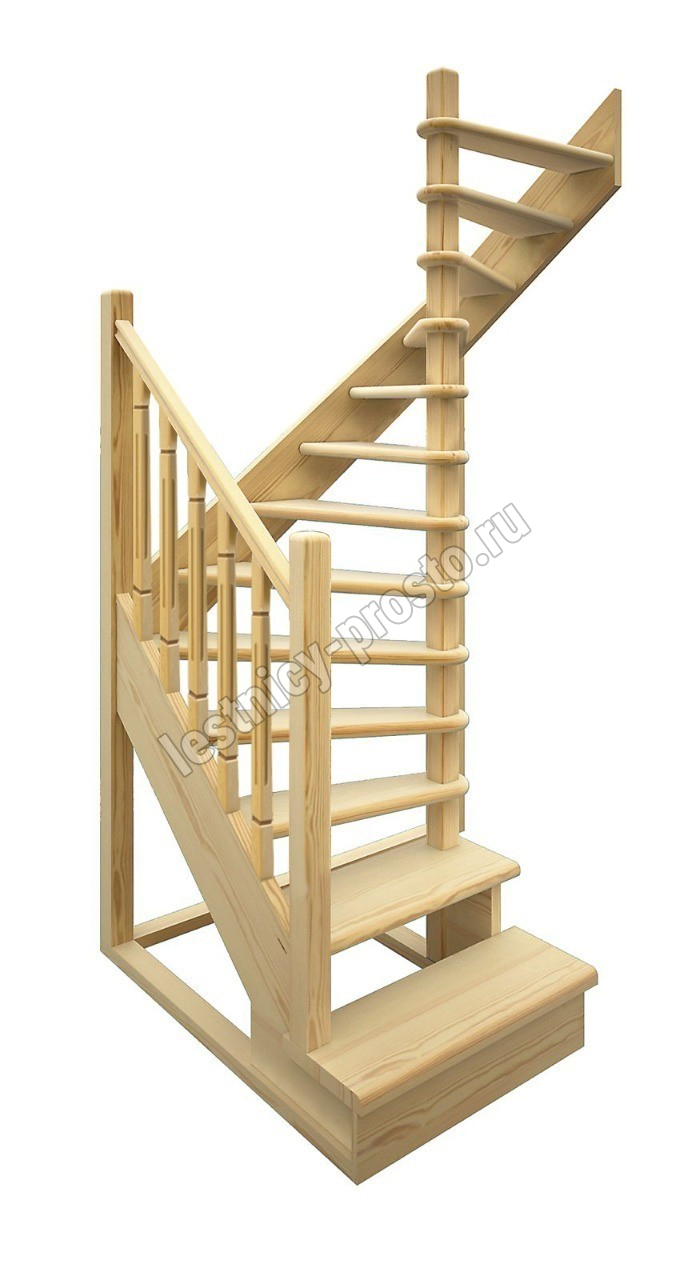Деревянная межэтажная лестница ЛЕС-03 2525-2720 проем 1640-900, Сосна