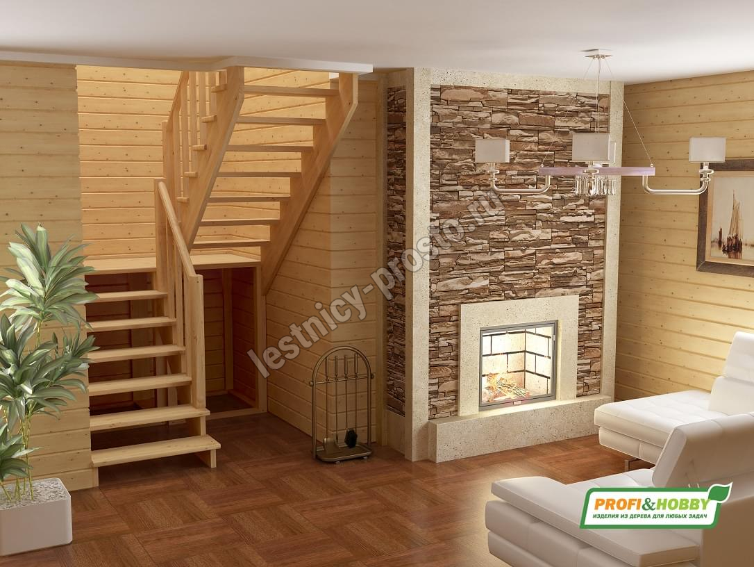 Лестница из сосны К-004М/2 с подступёнками под покраску |