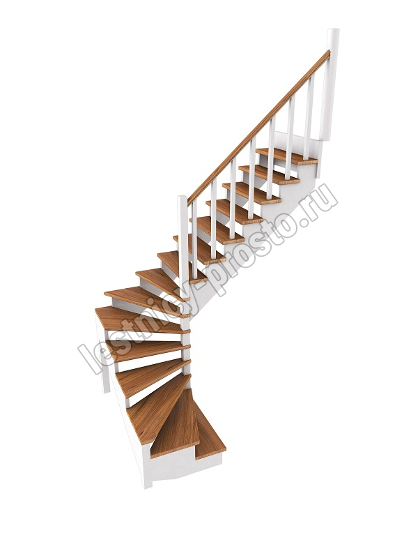 Ступени и поручень лестницы изготовлены из сращенного дуба; тетивы, столбы, балясины - из сосны. Возможно изготовление данной модели полностью из дуба. Базовый комплект включает в себя деревянные элементы лестницы и ограждения без какого-либо покрытия.
