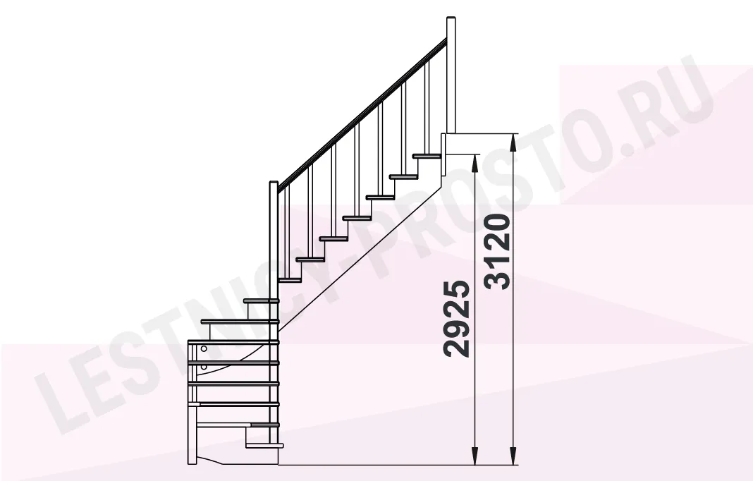 Схема лестницы К-003М/5 с поворотом налево