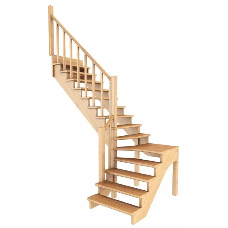 Базовый комплект включает в себя деревянные элементы лестницы и ограждения без какого-либо покрытия.