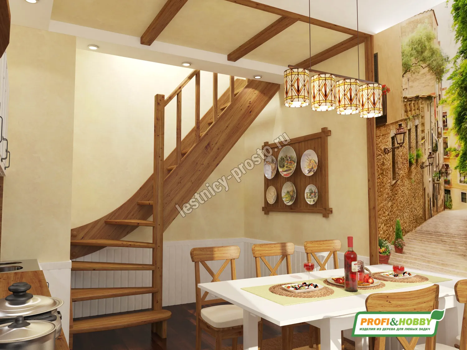 Базовый комплект включает в себя деревянные элементы лестницы с подступёнками и ограждения без какого-либо покрытия.