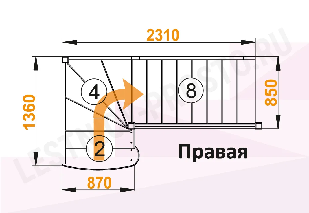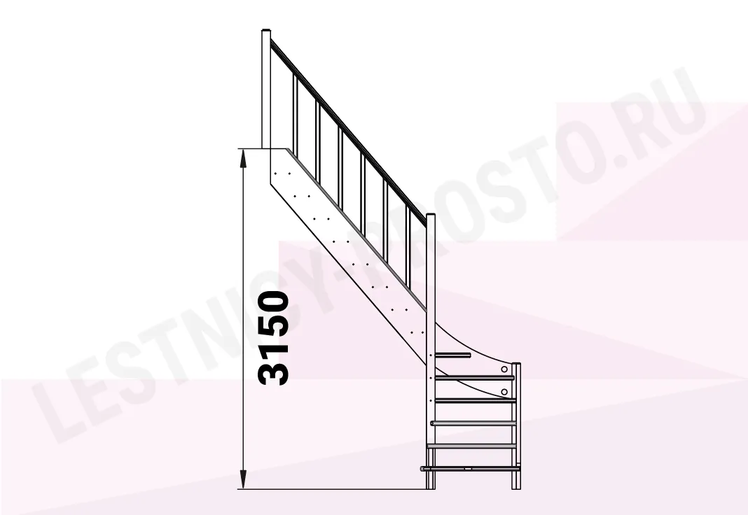 Базовый комплект включает в себя деревянные элементы лестницы и ограждения без какого-либо покрытия.