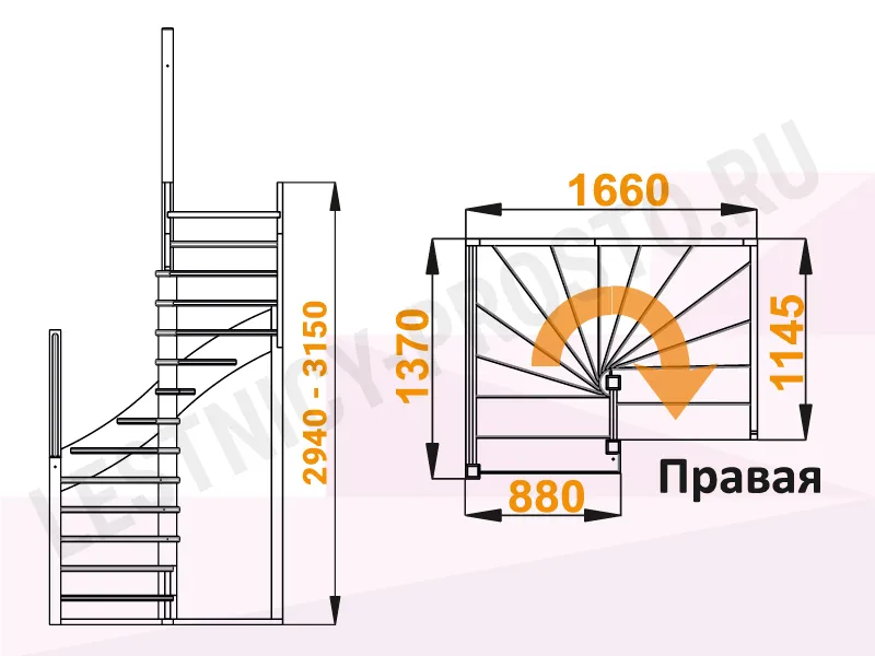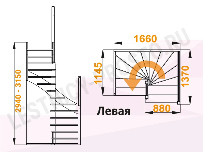 Высота лестницы 2940 - 3150 мм