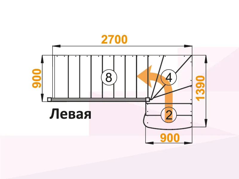 Схема лестницы К-001М/1 с поворотом налево