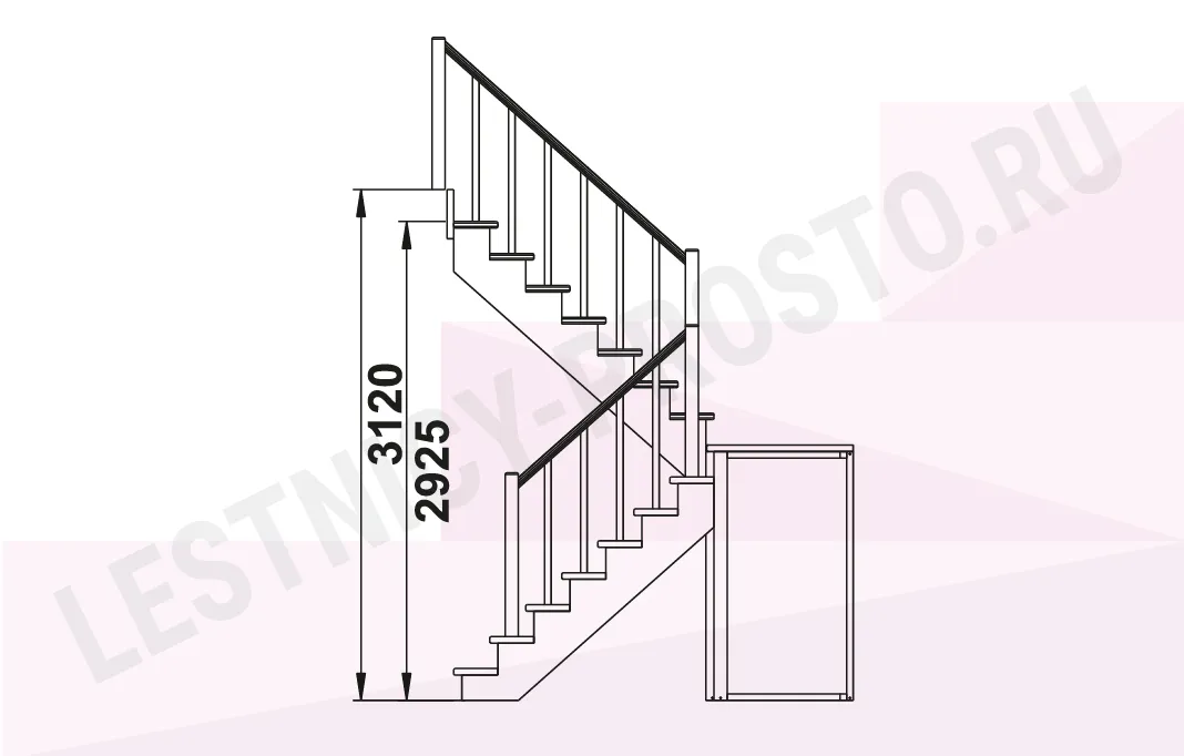 Сочетание оптимального угла подъема, комфортного широкого марша и глубокой ступени делают лестницу одной из самых удобных.