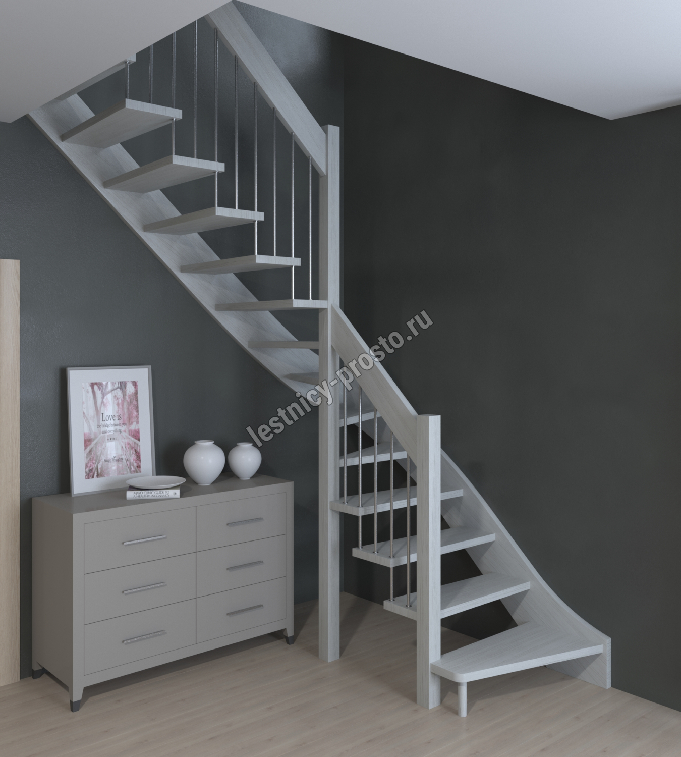 Лестница Prosto Console г-образная забежная дуб, h320 см