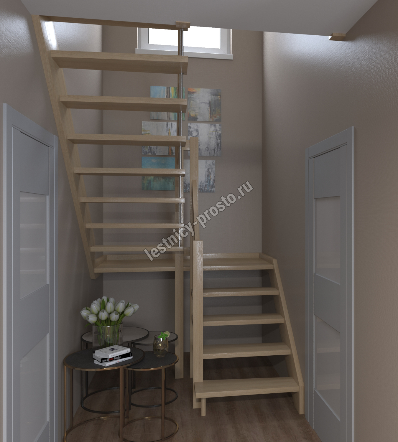 Лестница Prosto Console п-образная забежная, бук h280 см