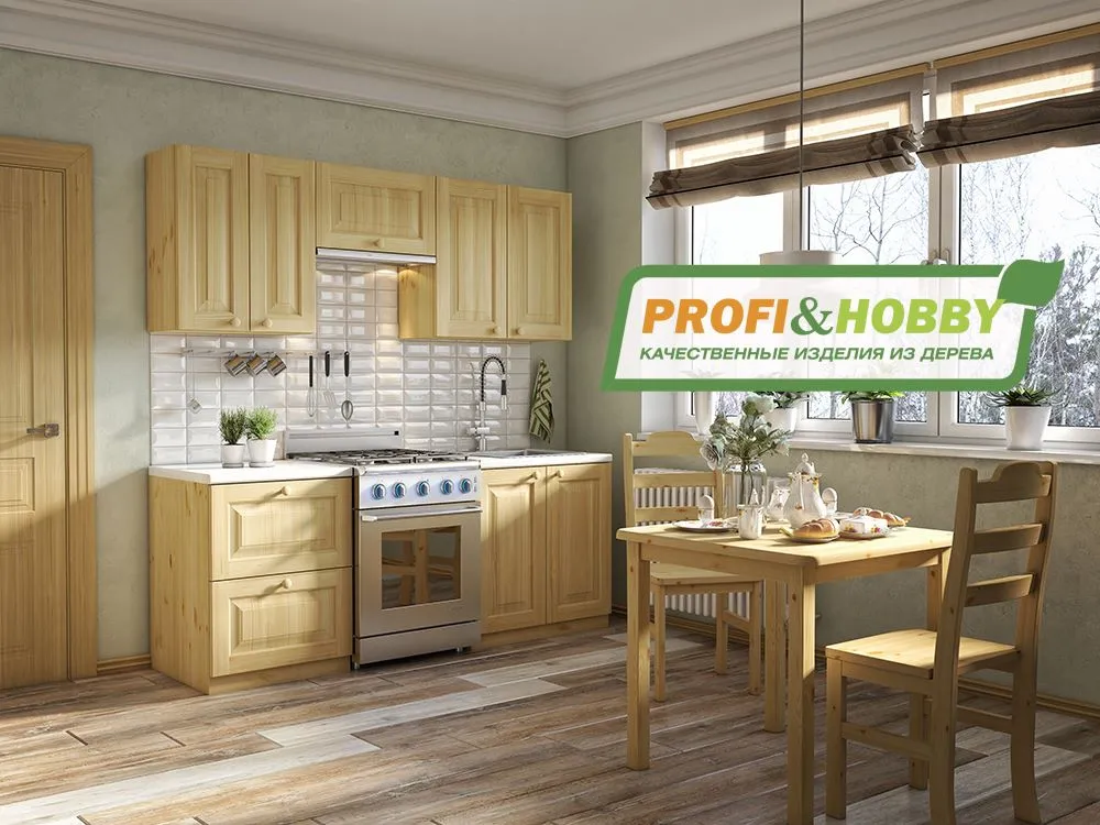 Небольшой кухонный гарнитур из 100% массива сосны шириной всего 2 и высотой 2,32 метра (верхние шкафы 90 см). Один из самых распространенных проектов кухни, который подойдёт для небольшой квартиры, загородного дома, гостиницы или хостела. Цвет на выбор - более 20 вариантов (при заказе кухни в нашем интернет магазине просьба указывать название цвета в комментариях).