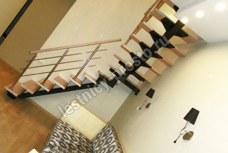 Лестница PROSTO MONO прекрасно подходит для интерьеров с минималистичным дизайном, дизайном в стиле лофт или хайтек. Основой лестницы служит цельносварной центральный косоур, который обеспечивает надёжную прочность конструкции и "парящий" дизайн, лестница с таким каркасом в интерьере смотрится легко и воздушно.
