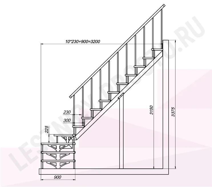 Высота лестницы 3150 - 3375 мм