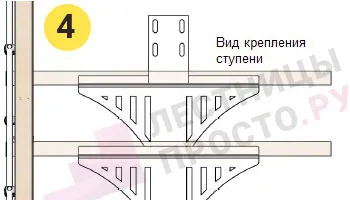 Вы можете выбрать для лестницы любой вид крепления ступеней из показанных ниже в блоке "Чертежи и схемы" (просто оформите заказ, мы позвоним вам для согласования деталей и уточним номер необходимого крепления) .