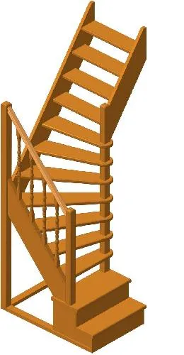 При монтаже этой лестницы, возможно регулировать высоту и глубину шага, таким образом можно получить лестницу под высоты этажа в диапазоне 2220 - 3000 мм. Ступени лестницы выполнены из сращенной ольхи и тонированы защитным лаком.