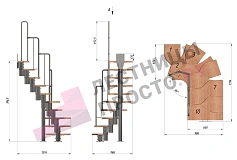 Высота лестницы 1800 - 2640 (10 ступеней) мм
