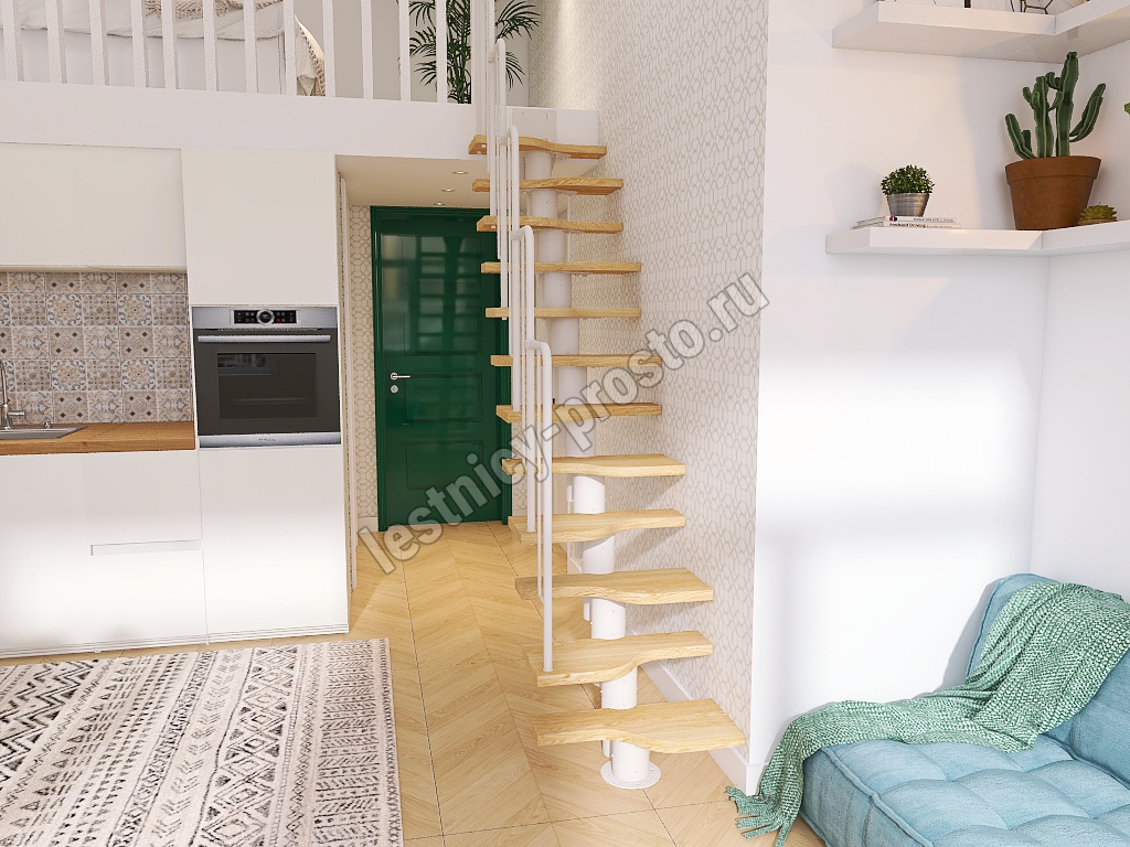 Лестница Prosto Urban White гусиный шаг 600 мм, h216-312 см (12 ступеней), ясень