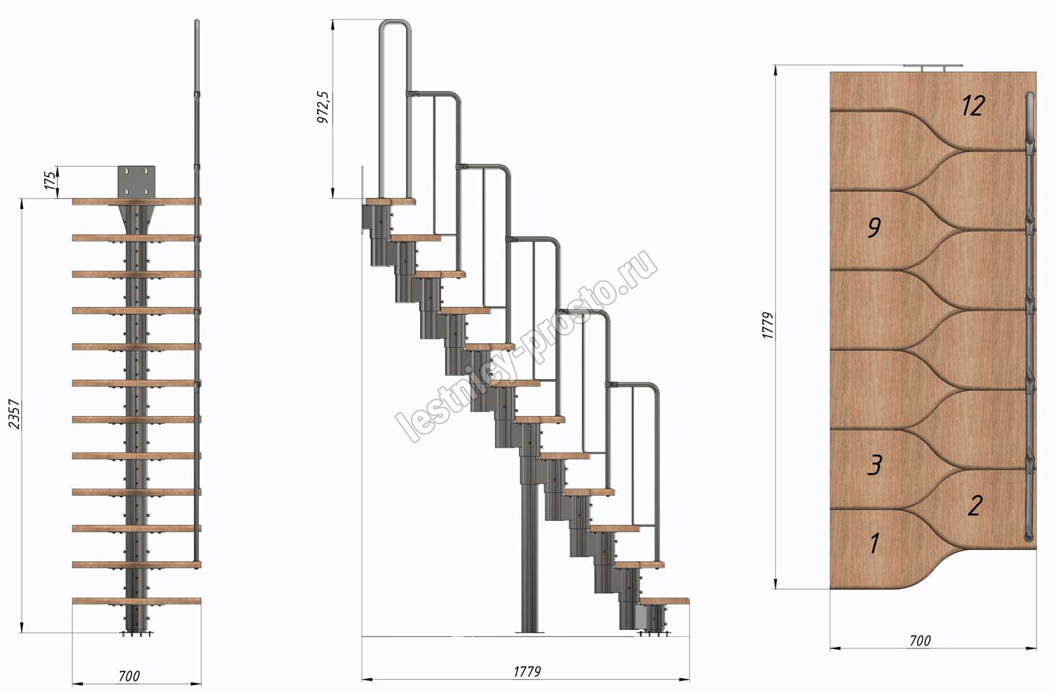 Высота лестницы 2160 - 3120 (12 ступеней) мм