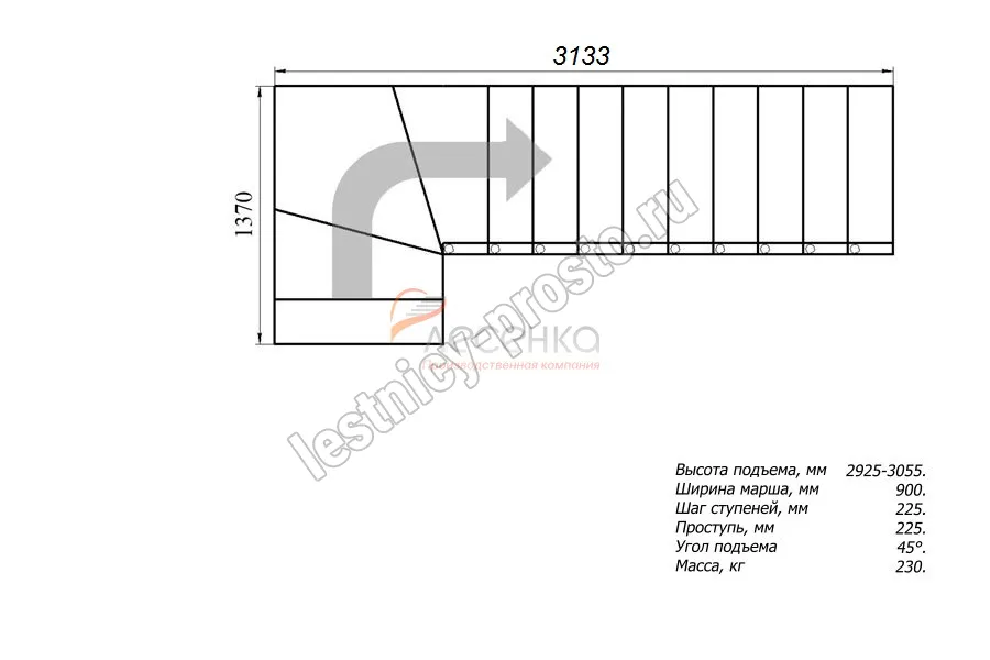 Модульная лестница Фаворит 225 2925-3055, Черный, Лиственница, Нержавеющая сталь