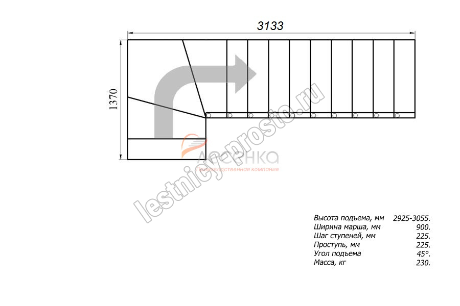 Модульная лестница Фаворит 225 2925-3055, Серый, Бук, Нержавеющая сталь
