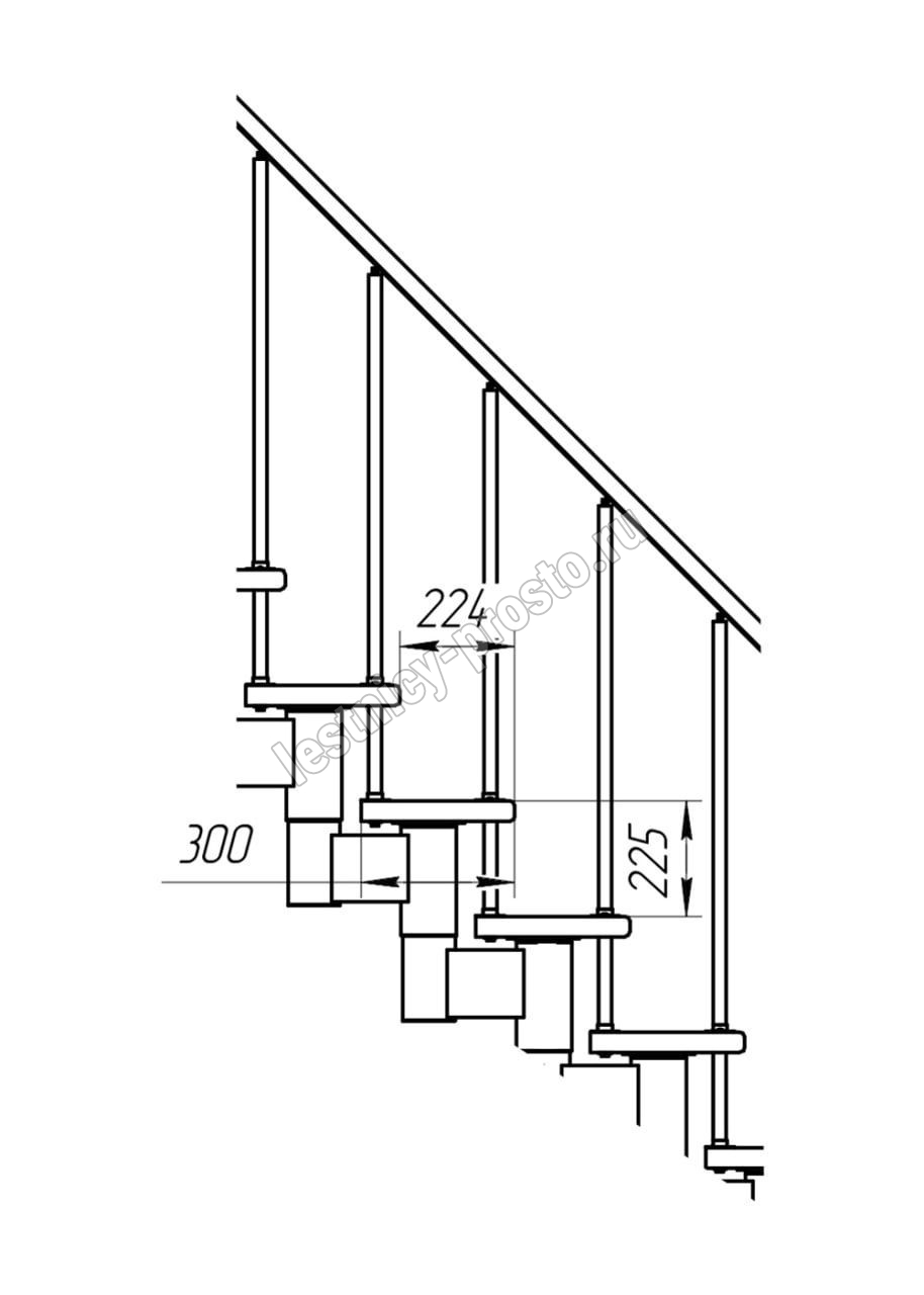 Модульная лестница Спринт 225 2475-2585, Белый, Бук, Нержавеющая сталь