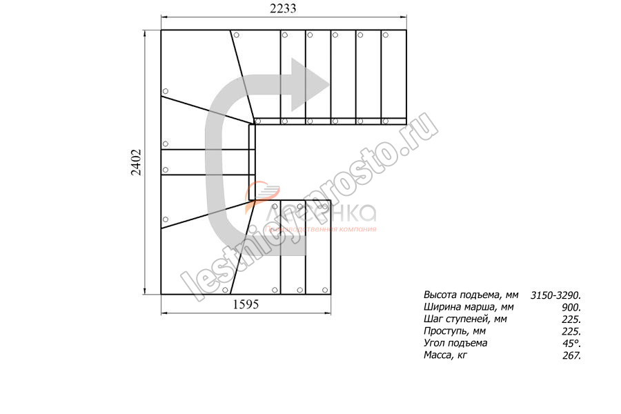 Модульная лестница Спринт 225 3150-3290, Белый, Бук, Крашеная