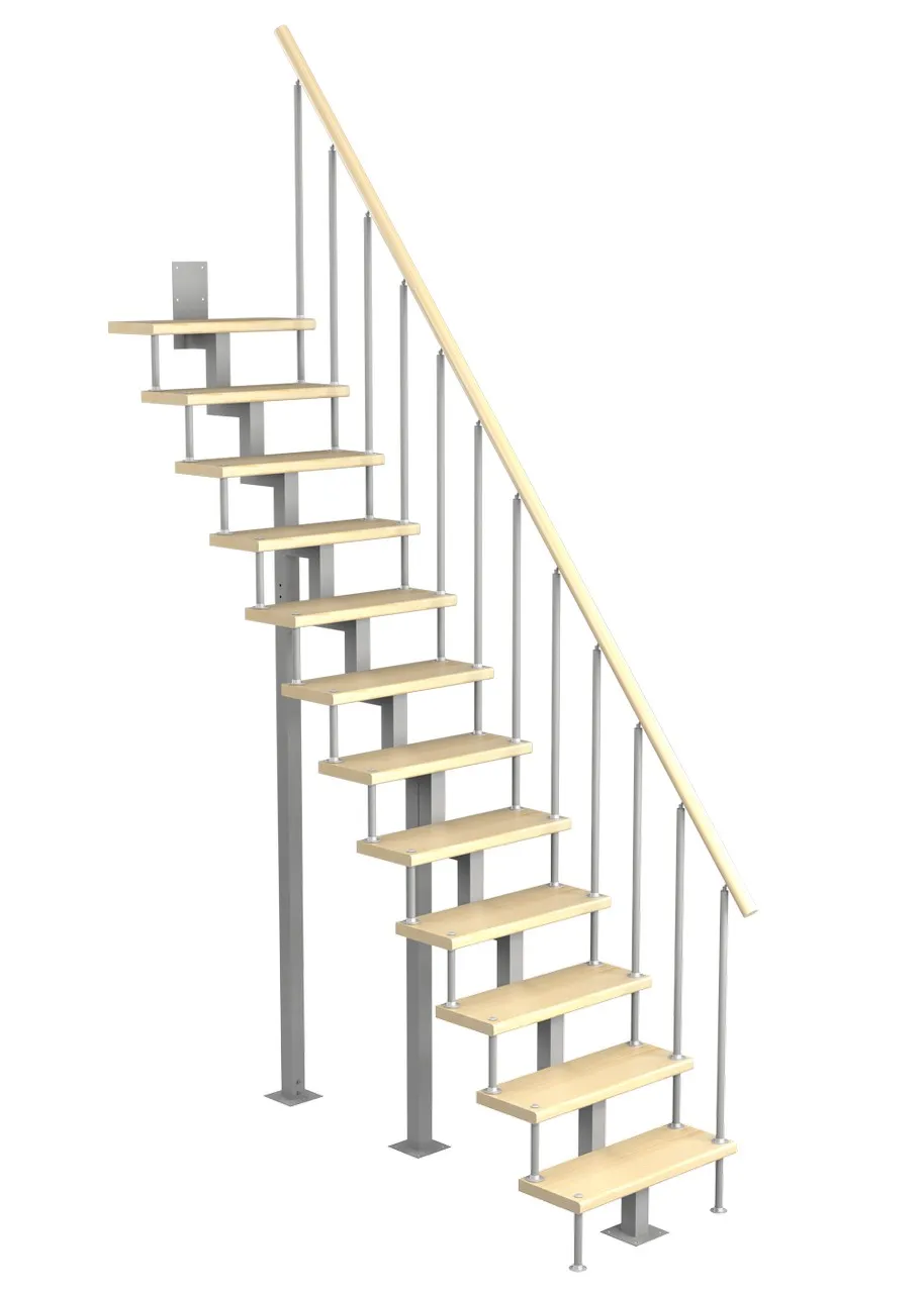 Модульная малогабаритная лестница Линия 2700-2925, Серый, Лиственница, Нержавеющая сталь