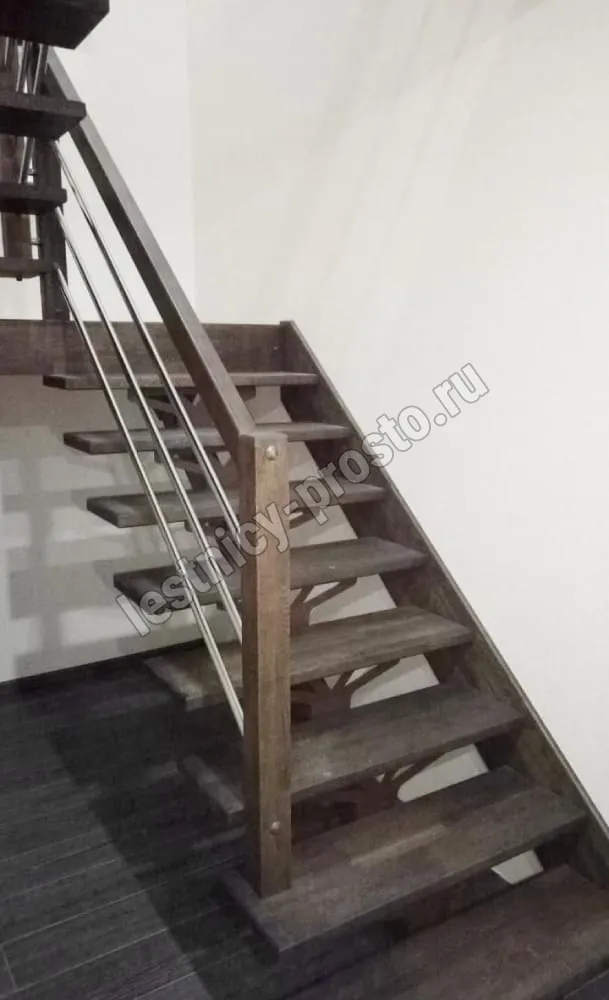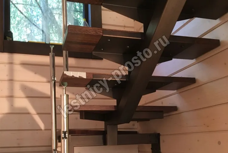 Ступени лестницы изготовлены из дерева категории А/В паркетной склейки без какого-либо покрытия.
