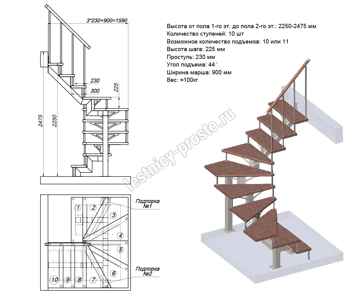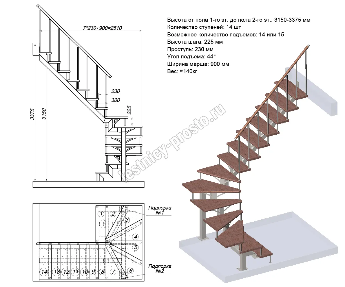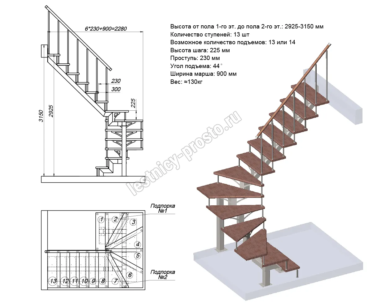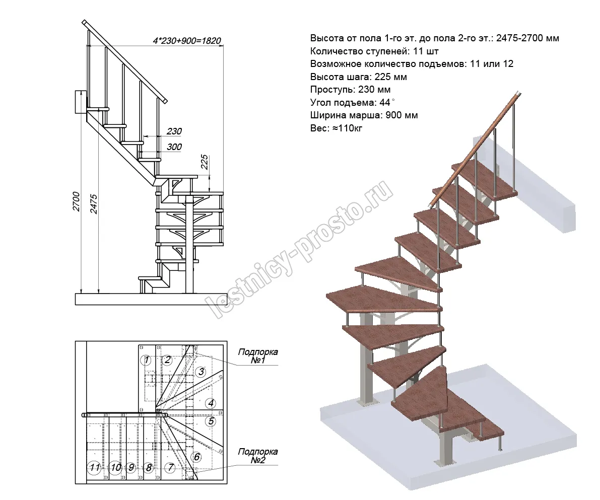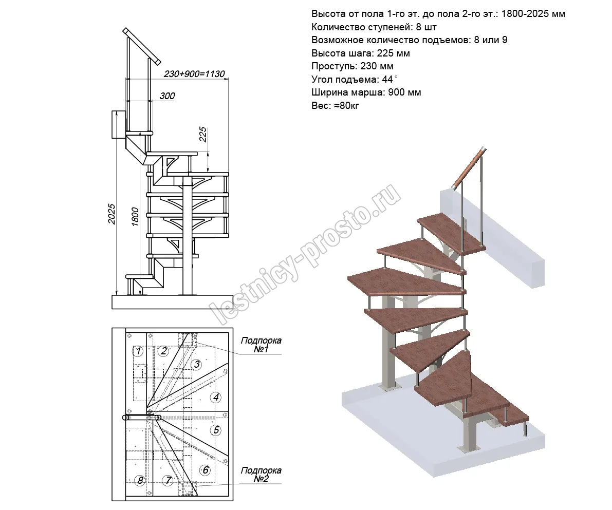 Высота лестницы1800 - 2025 (8 ступеней)