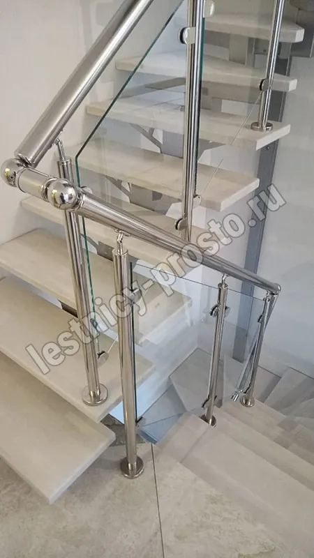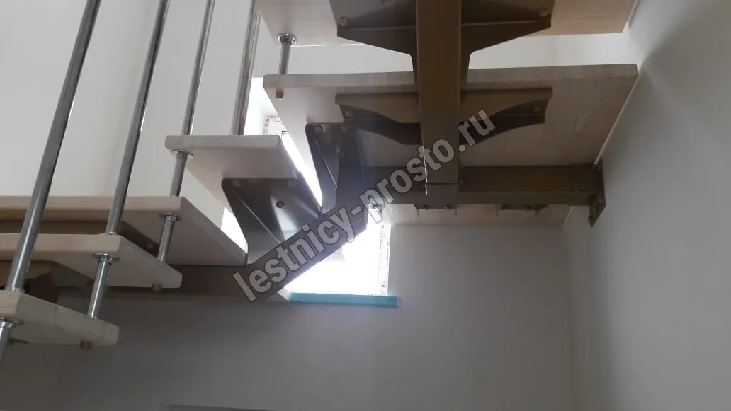 Основой лестницы служит цельносварной центральный косоур, который обеспечивает надёжную прочность конструкции и "парящий" дизайн, лестница с таким каркасом в интерьере смотрится легко и воздушно.