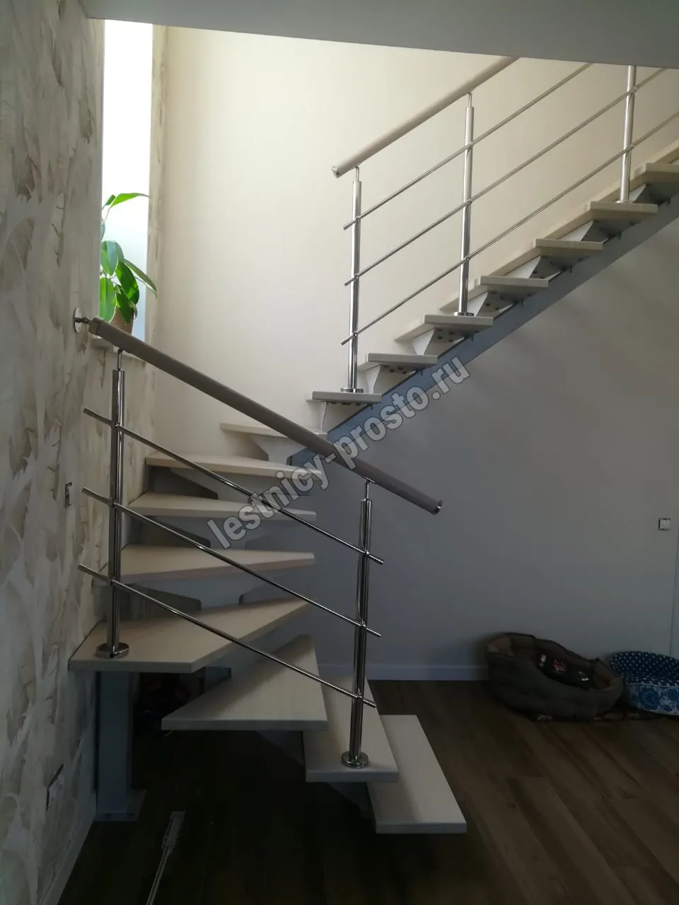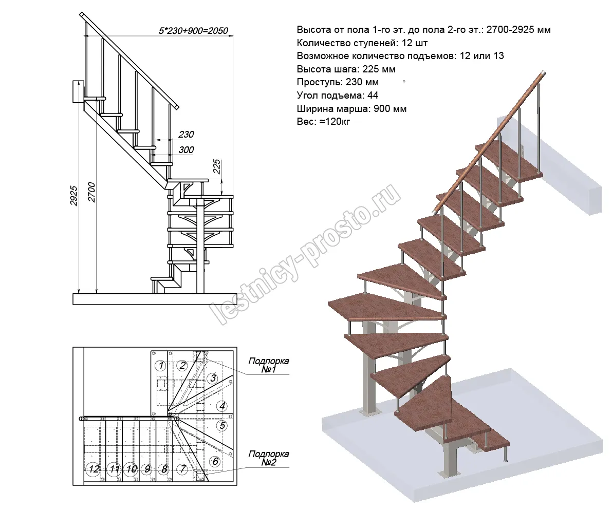 Под заказ возможно изготовление каркаса лестницы PROSTO MONO с поворотом начинающимся с любой ступени, а также, возможно реализовать поворот через площадку. Звоните нам по любым возникающим вопросам, мы поможем сориентироваться и сделать правильный выбор.