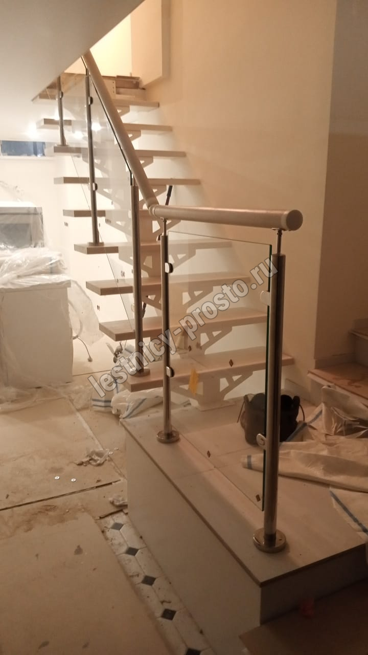 Ступени и поручень выполнены из цельноламельного ясеня категории АВ.