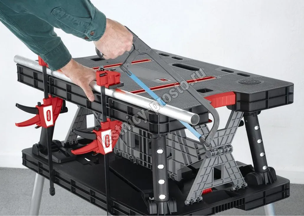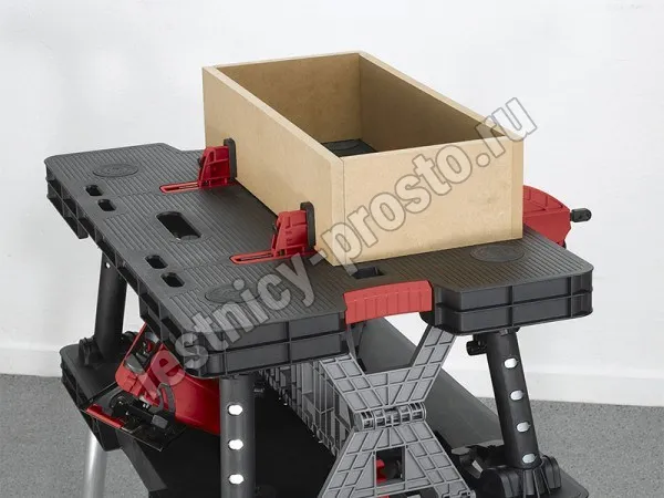 Складной верстак KETER - это передвижное рабочее место. Изготовлен из пластика устойчивого к истиранию и высоким температурам. Складная конструкция позволяет быстро подготовить верстак к использованию. Большая рабочая поверхность выдерживает нагрузку до 453 килограмм. В сложенном виде верстак занимает совсем мало места.