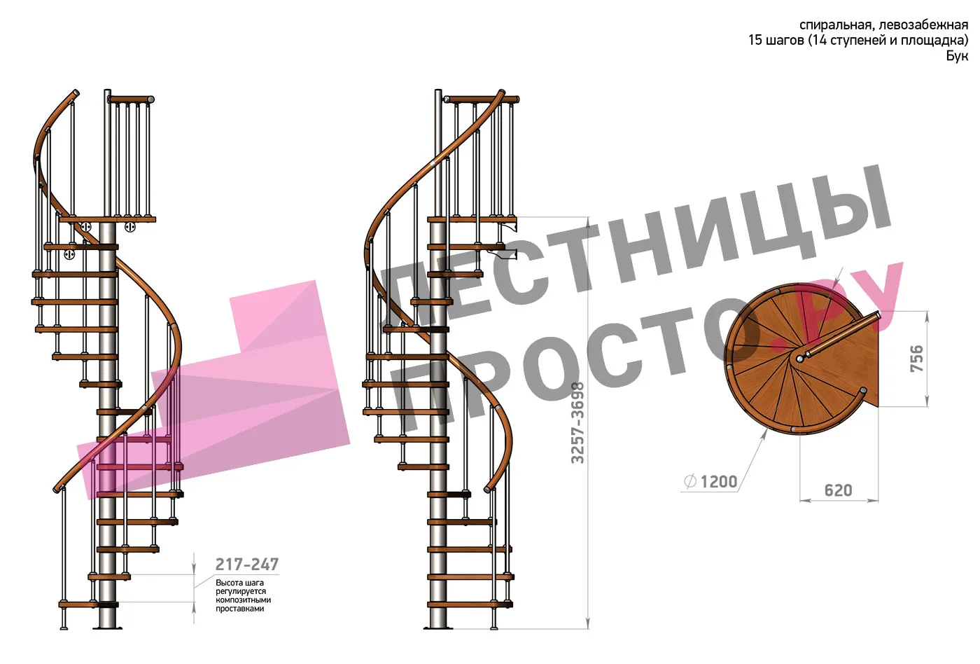 Винтовая лестница Prosto Spiral Black D120см, h325.7-369.8 см, бук