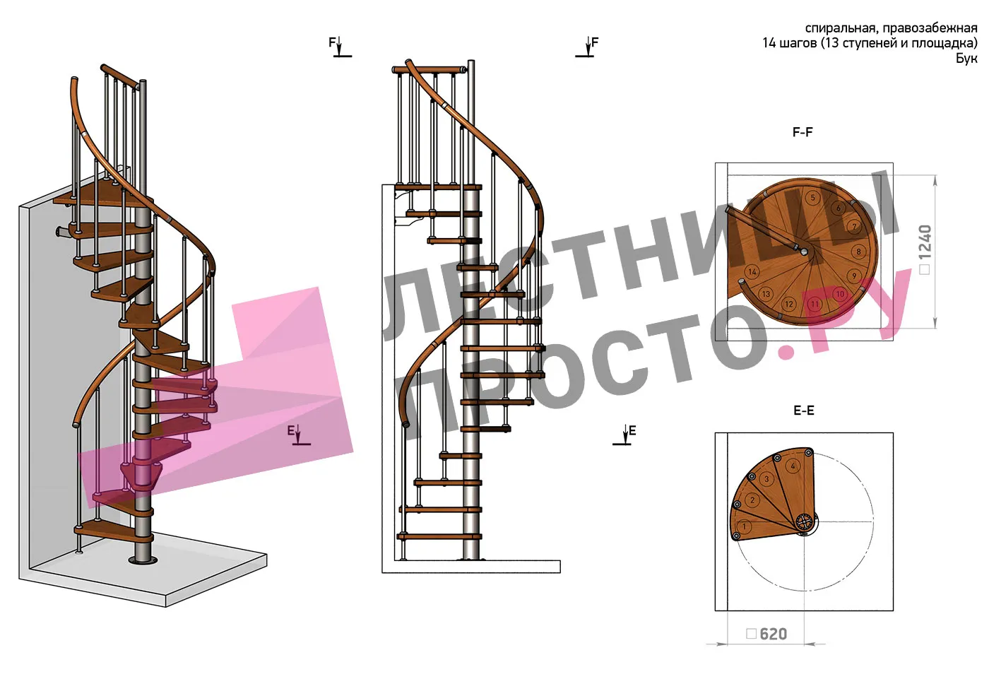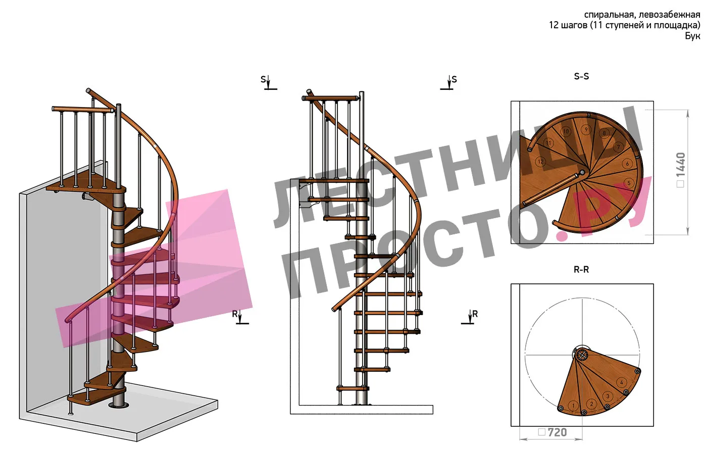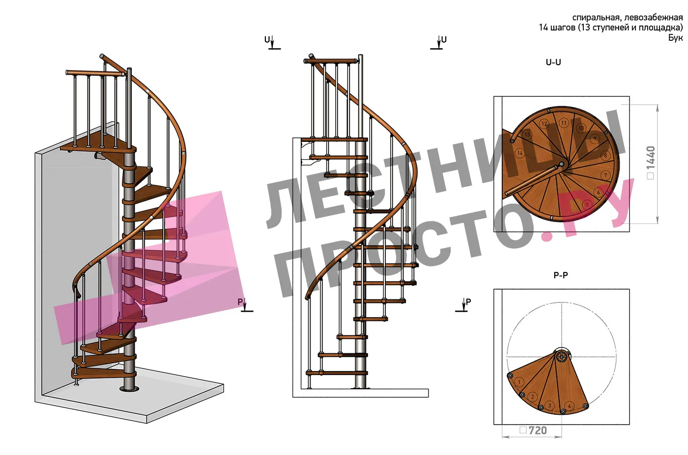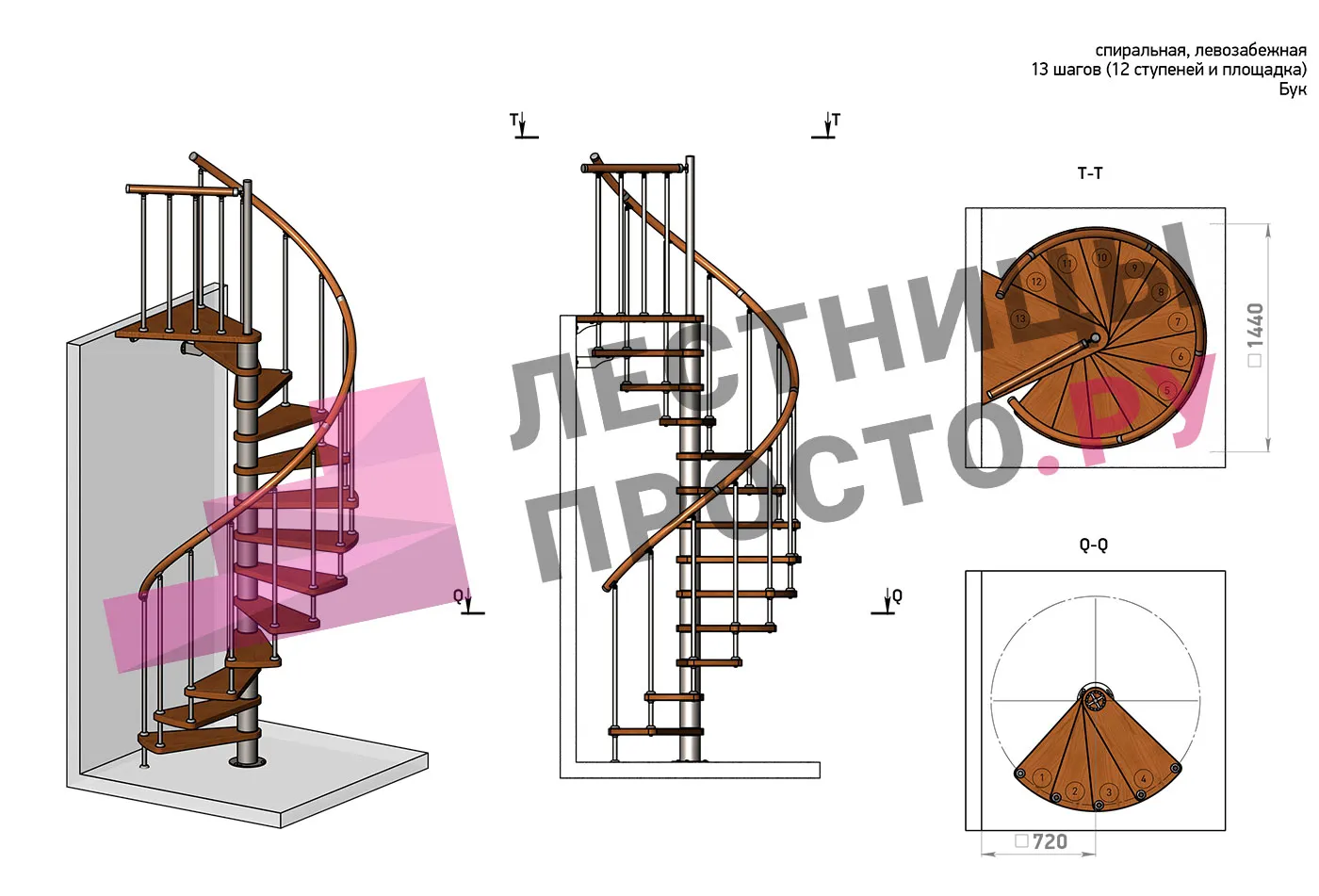 Решение об ориентации поворота принимается при сборке лестницы (комплект собирается и в правозабежную, и в левозабежную лестницу).