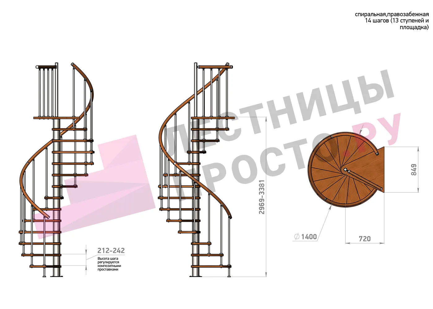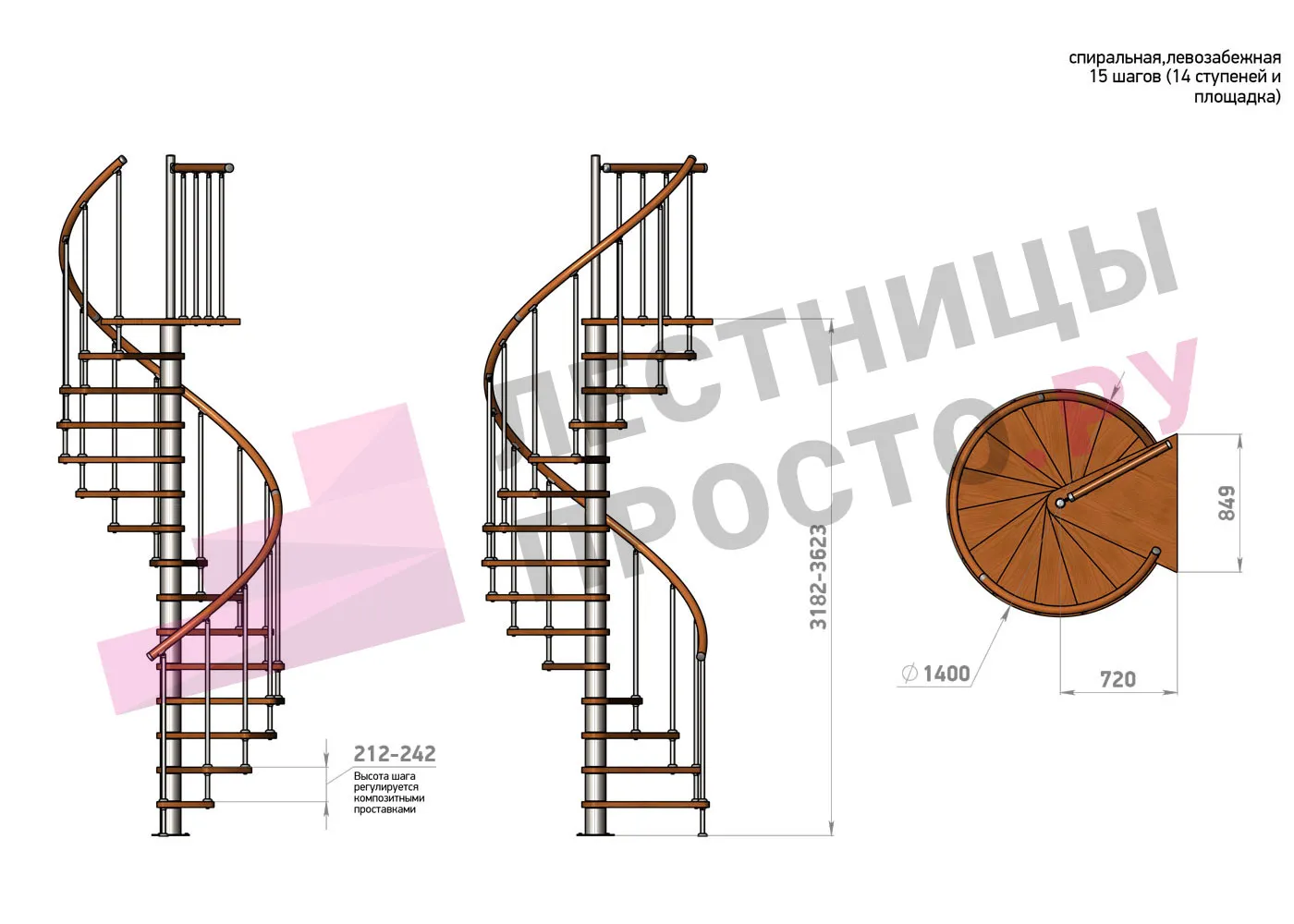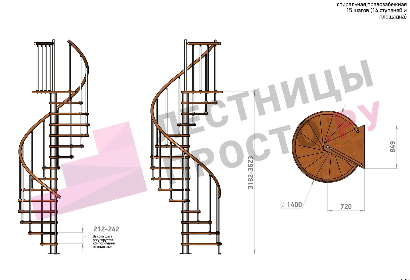 Винтовая лестница Prosto Spiral Black D140см, h318.2-362.3 см |