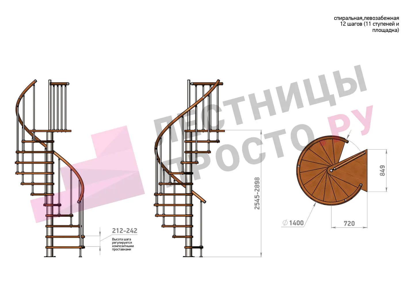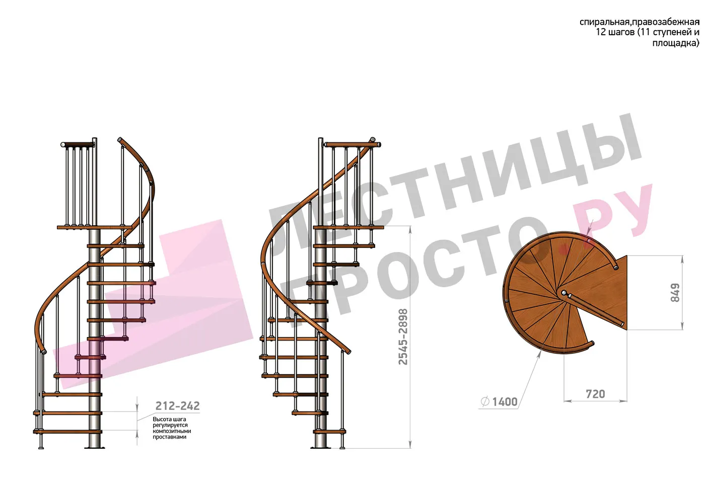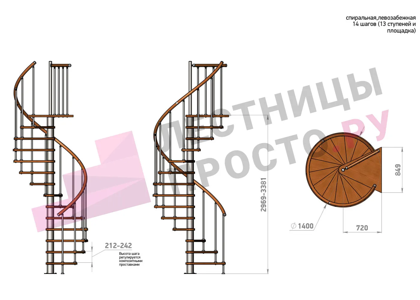 Винтовая лестница Prosto Spiral Black D140см, h318.2-362.3 см |