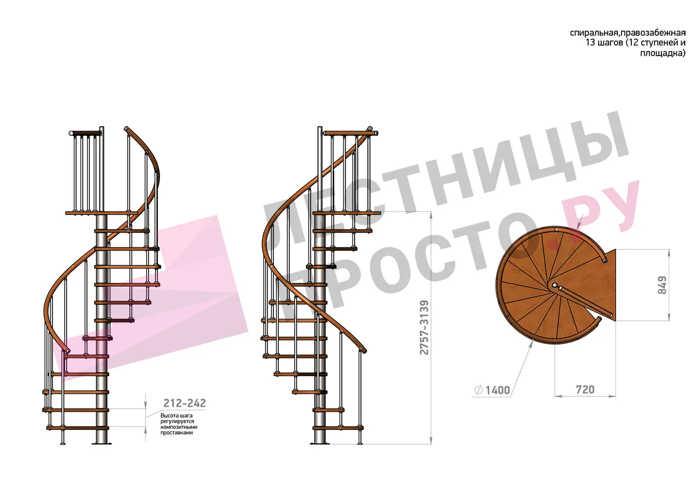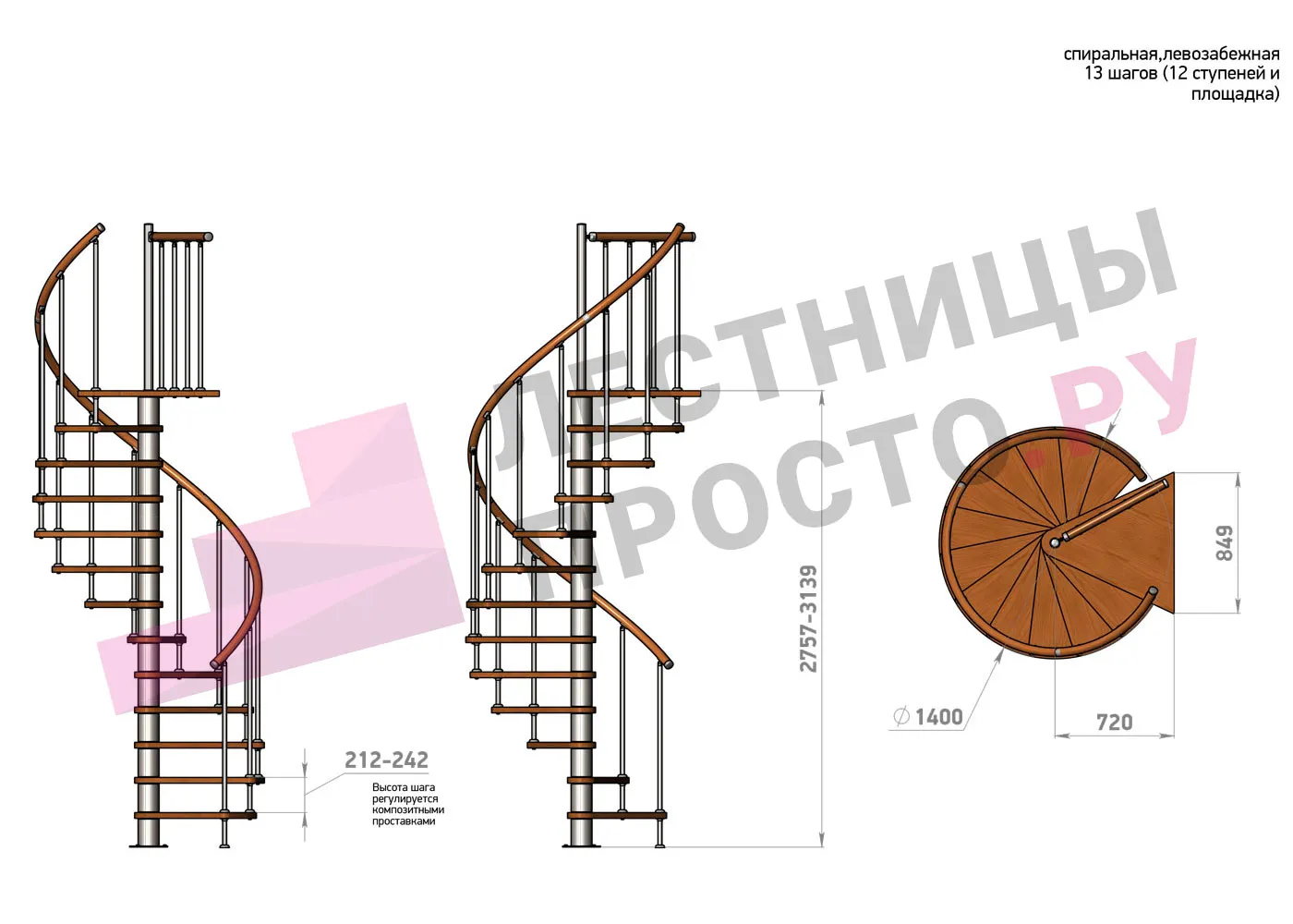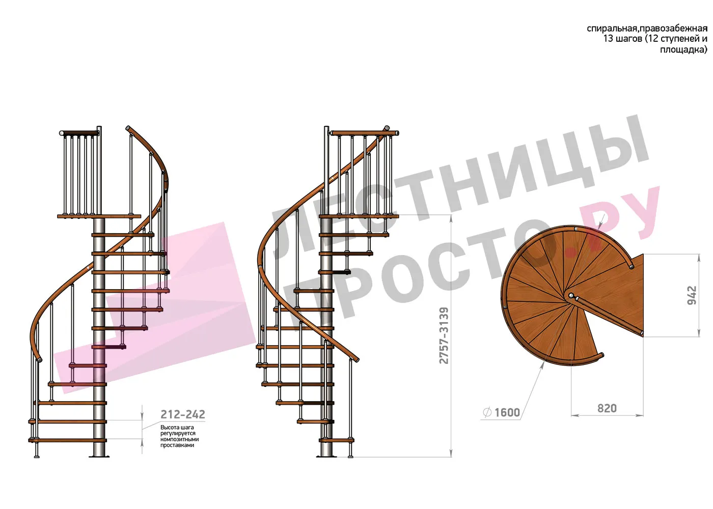 Винтовая лестница Prosto Spiral Black D140см, h275.7-313.9 см |