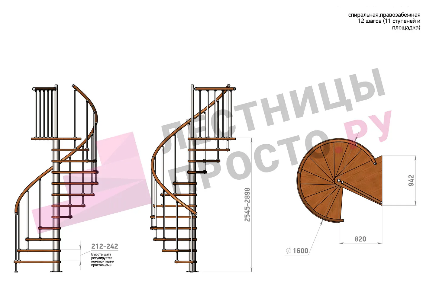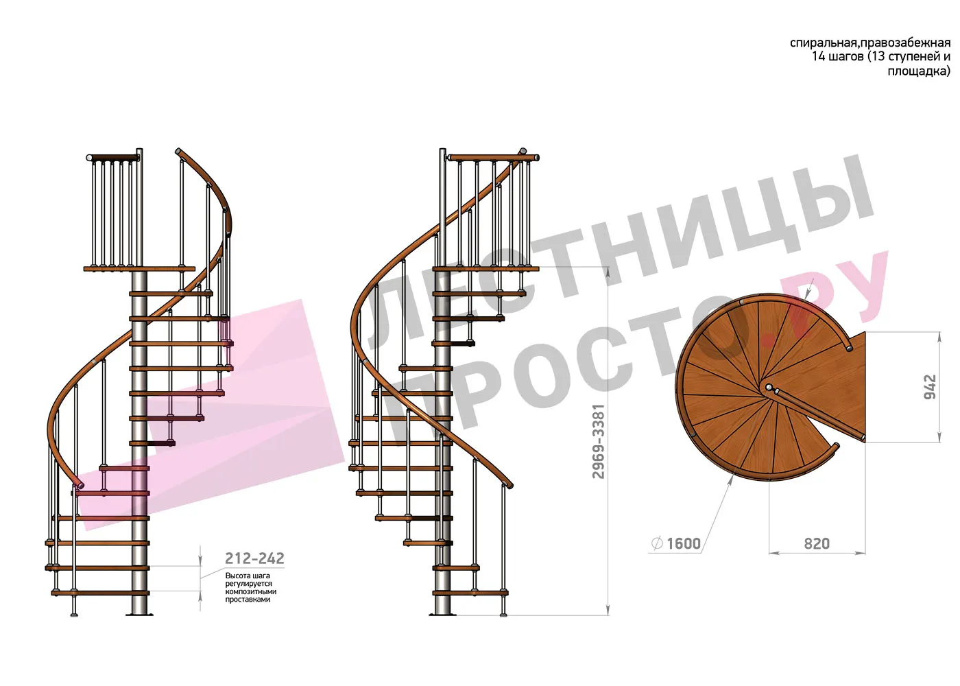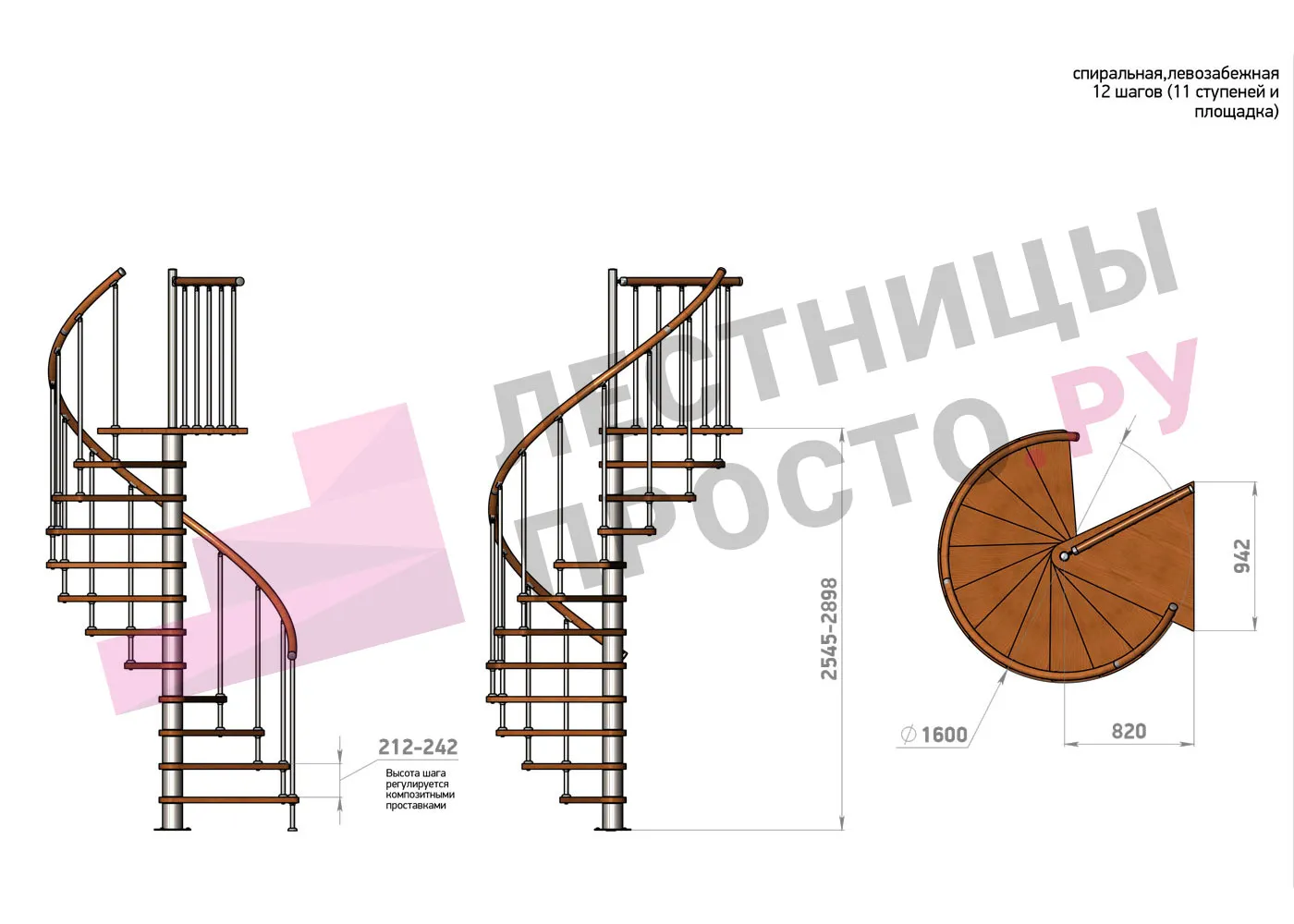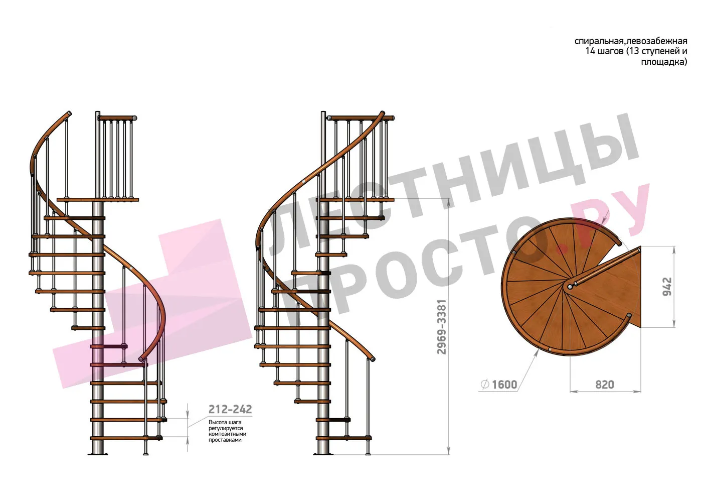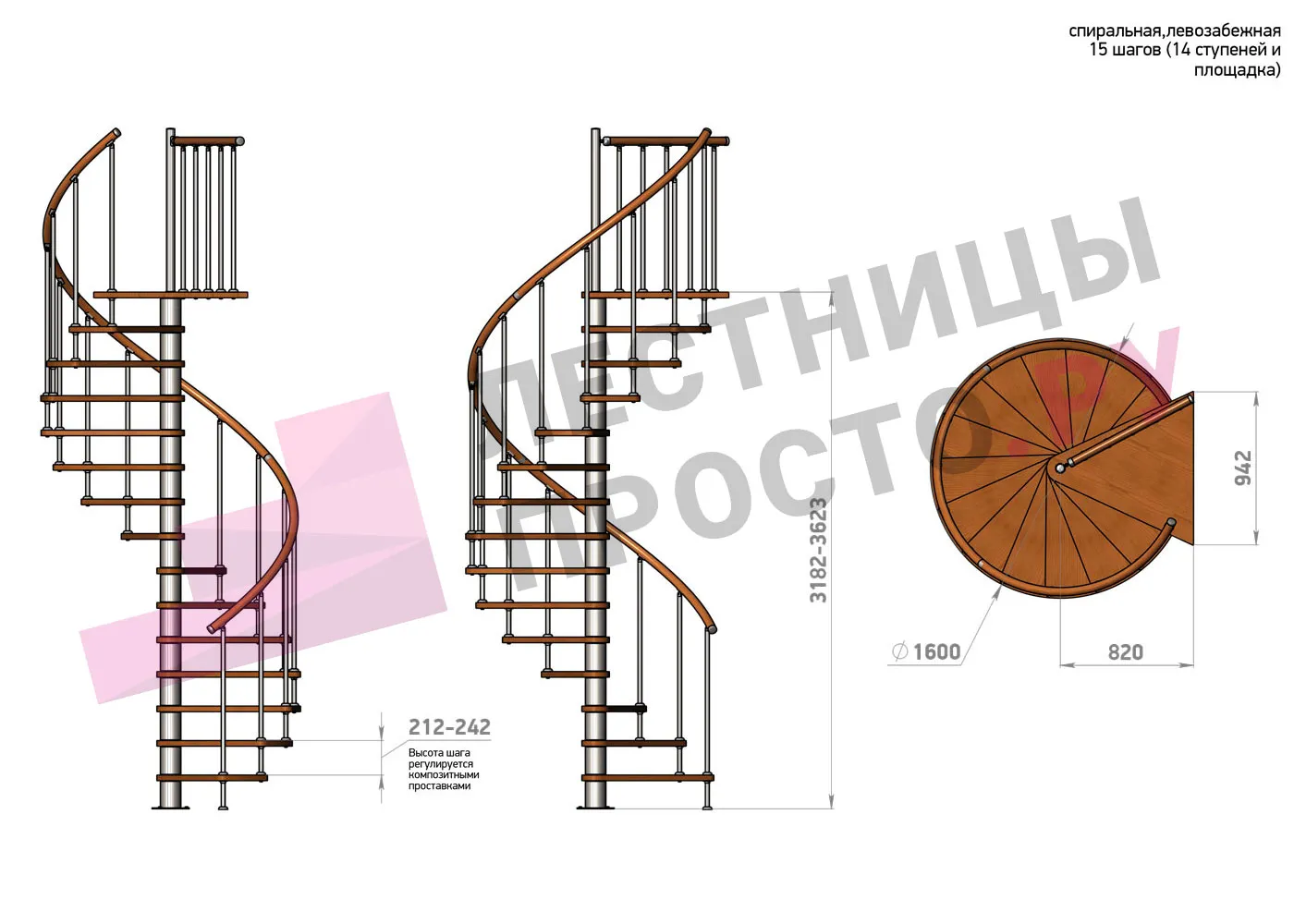 Винтовая лестница Prosto Spiral Black D160см, h318.2-362.3 см |