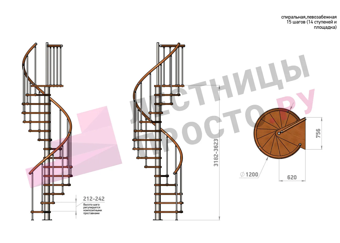 Винтовая лестница Prosto Spiral Black D120см, h318.2-362.3 см |