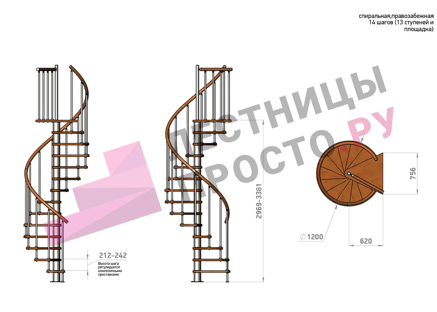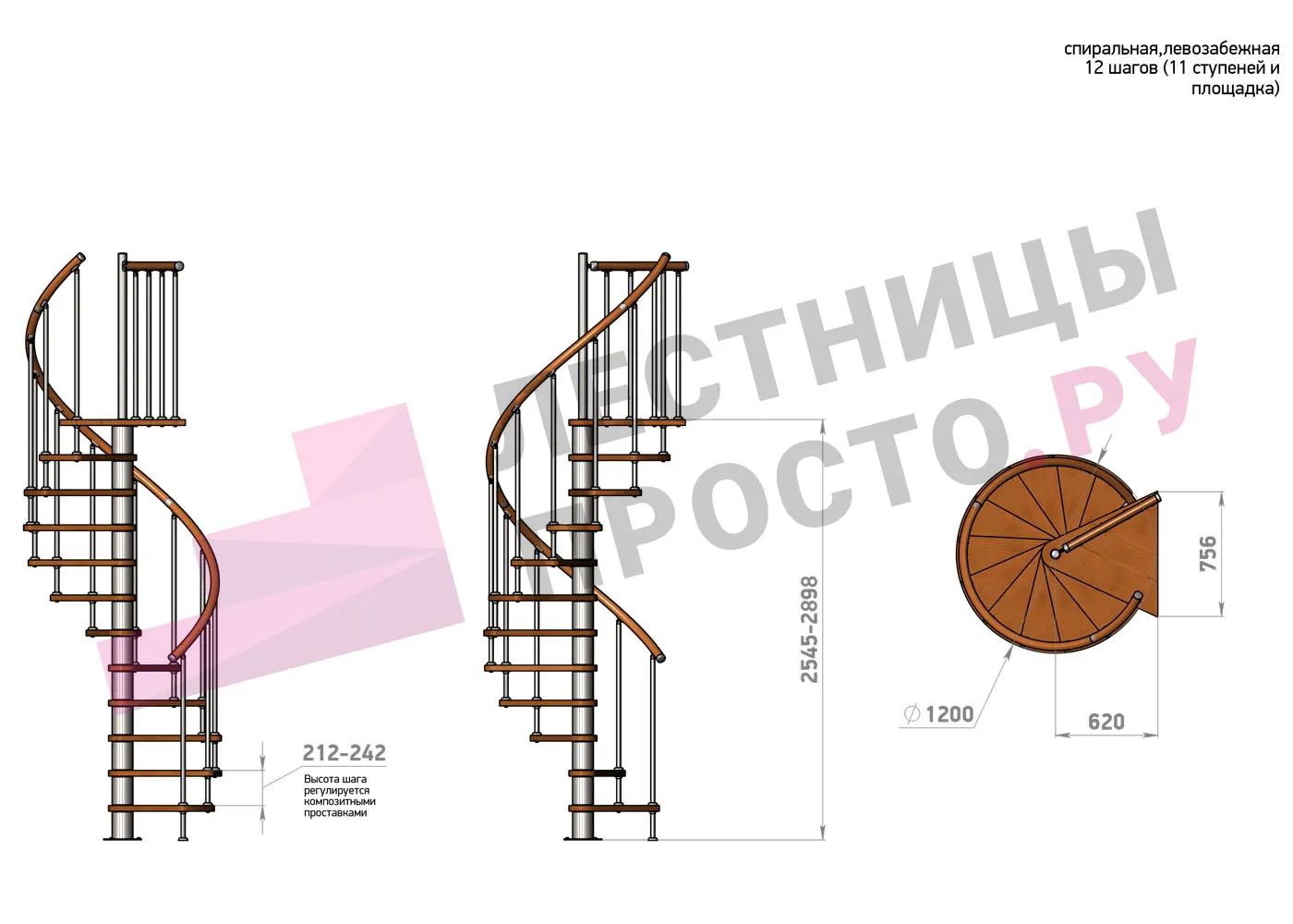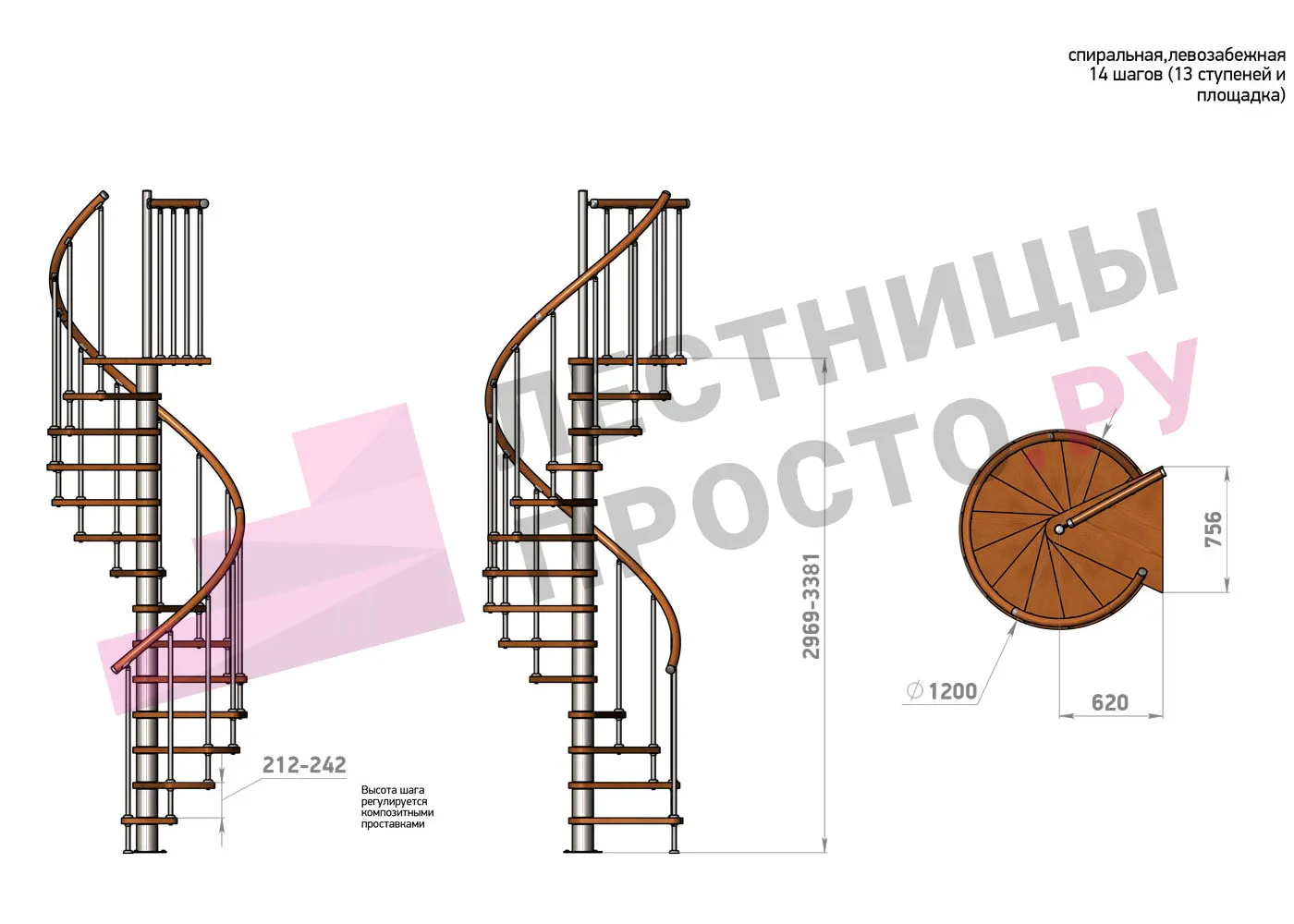 Винтовая лестница Prosto Spiral Black D120см, h296.9-338.1 см |