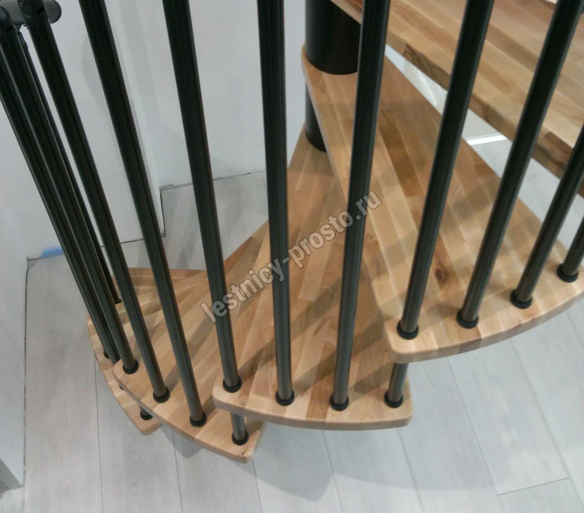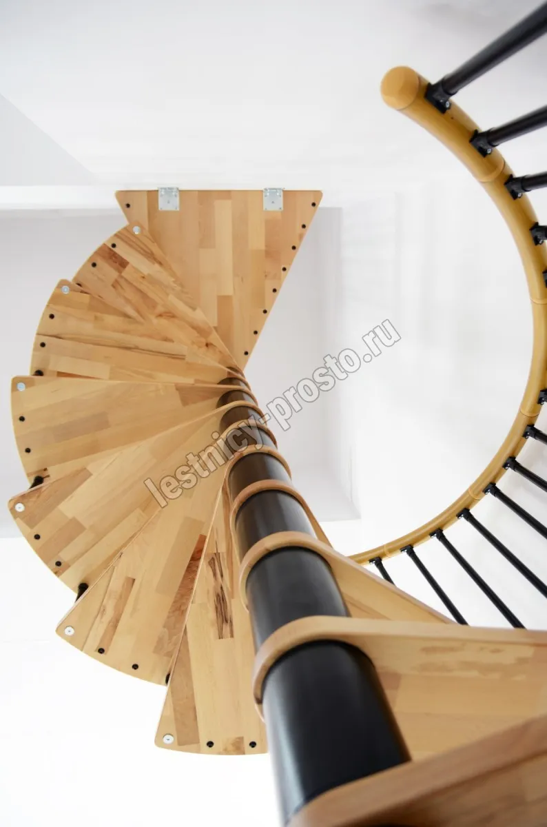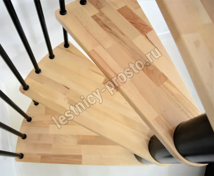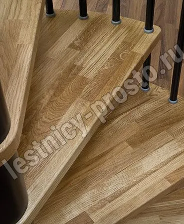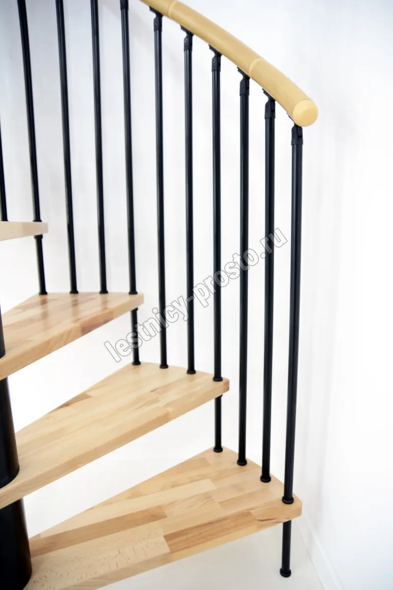 Лестница представлена в двух вариантах: с поворотом направо и с поворотом налево. Благодаря возможности регулировать высоту шага с помощью пластиковых вставок (входят в базовый комплект), высоту лестницы можно варьировать в пределах от 2860 до 3090 мм. Кроме того, купив дополнительную секцию для этой лестницы, можно поднять высоту до 3320 мм. Поручень изготовлен из массива дуба в тон ступеням. Ступени и поручень покрыты износостойким защитным лаком.