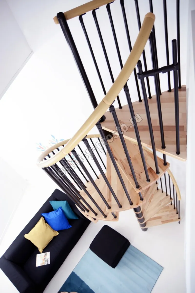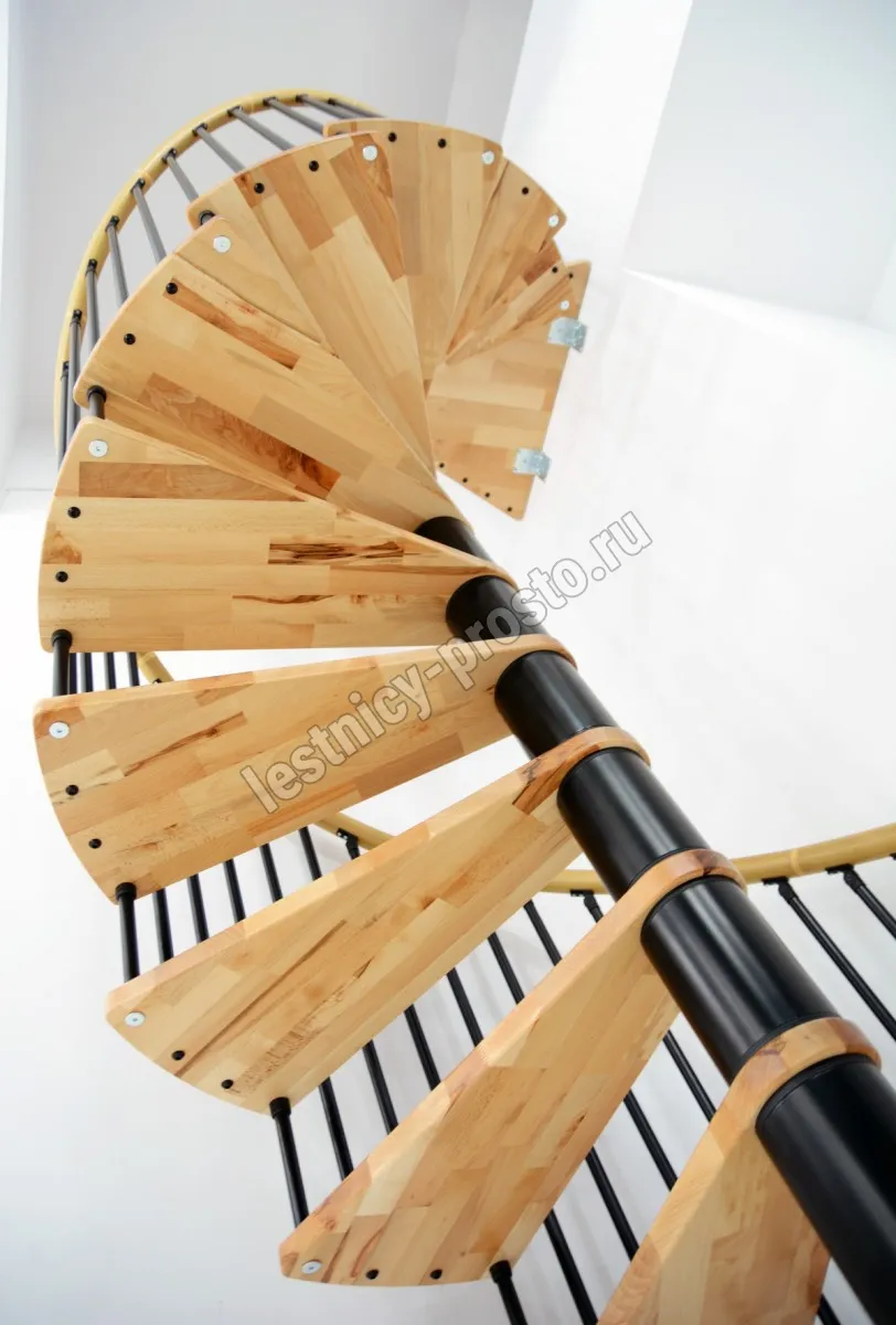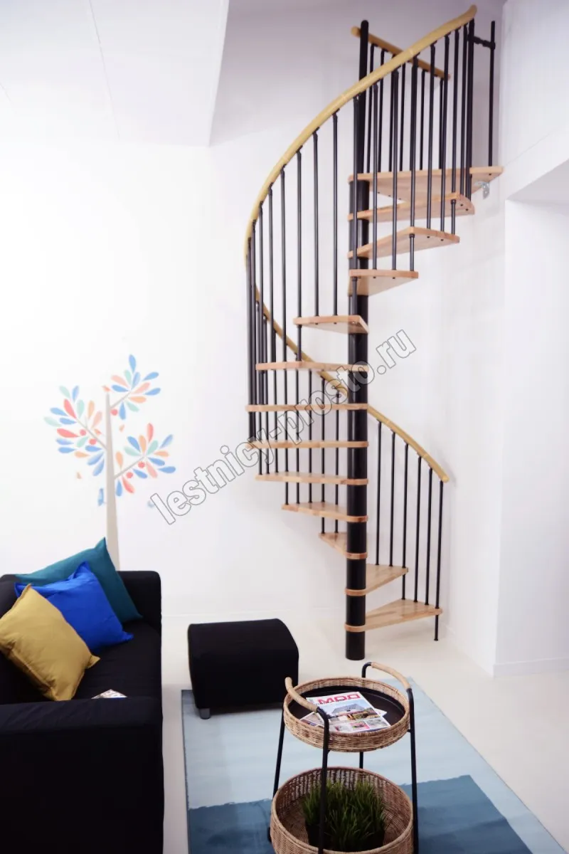Лестница представлена в двух вариантах: с поворотом направо и с поворотом налево. Благодаря возможности регулировать высоту шага с помощью пластиковых вставок (входят в базовый комплект), высоту лестницы можно варьировать в пределах от 2860 до 3090 мм. Кроме того, купив дополнительную секцию для этой лестницы, можно поднять высоту до 3320 мм. Поручень изготовлен из массива дуба в тон ступеням. Ступени и поручень покрыты износостойким защитным лаком.