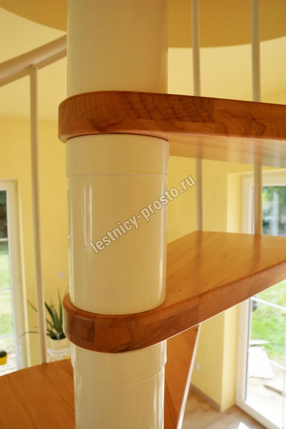 Ступени изготовлены из бука и покрыты износостойким защитным бесцветным лаком.