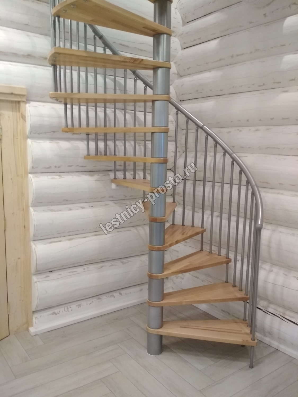 Винтовая лестница SPIRAL EFFECT d160 см, серебро, бук лакированный