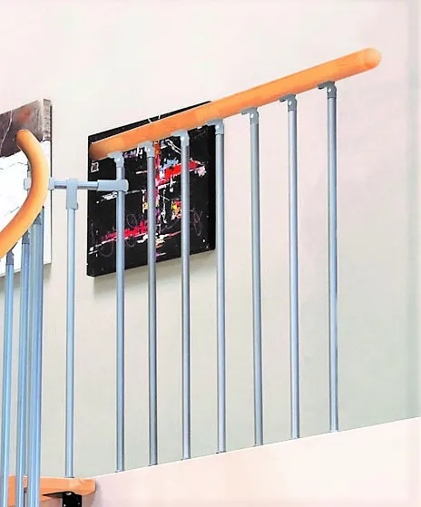 Перила изготовлены из массива бука и покрыты износостойким лаком.