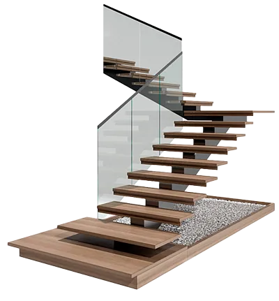 Лестница на центральном каркасе г-обр. металлик, ступени лиственница, LP-151021